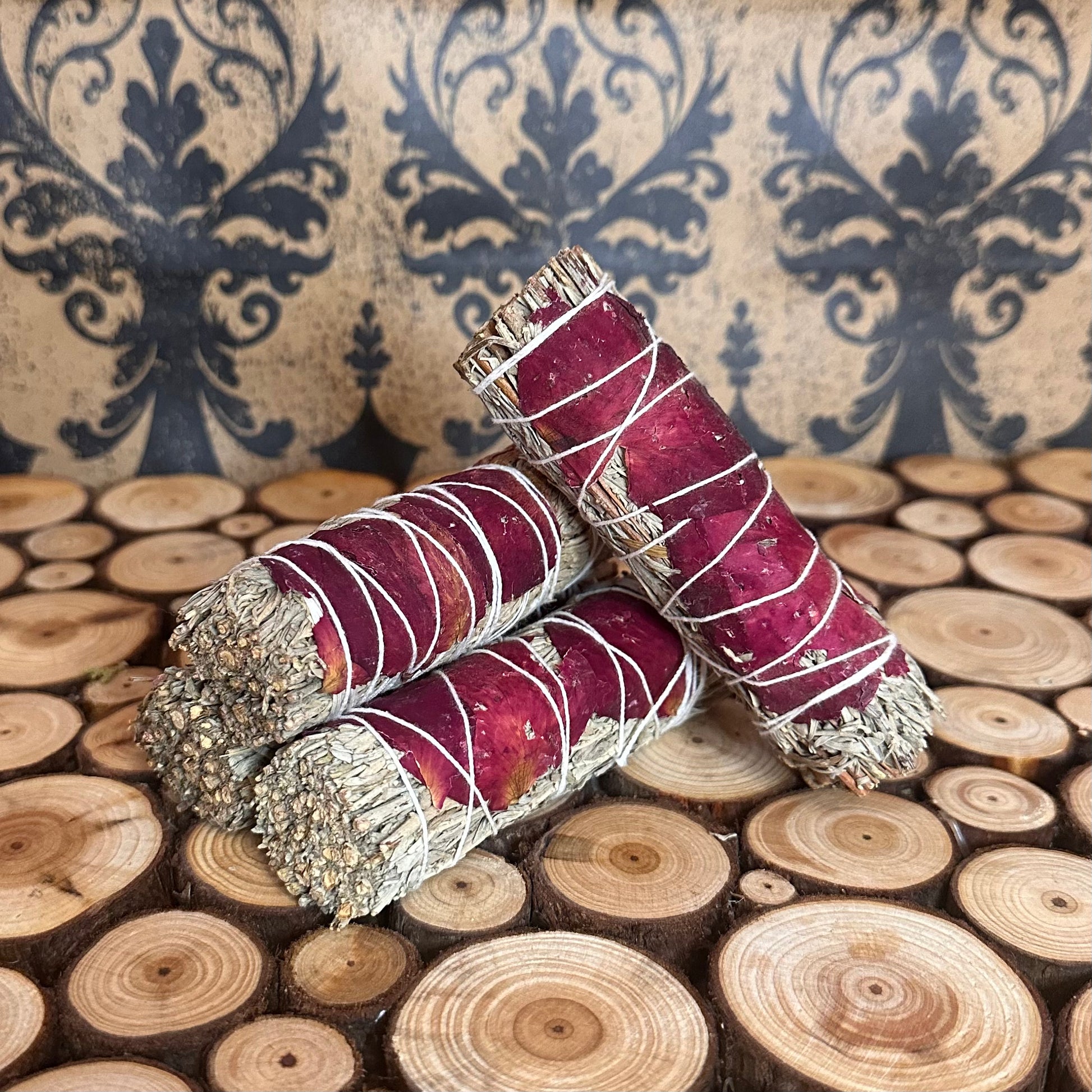 The addition of Red Rose to the bundle brings in soothing and loving vibrations. Great for use in clearing a room after an argument.