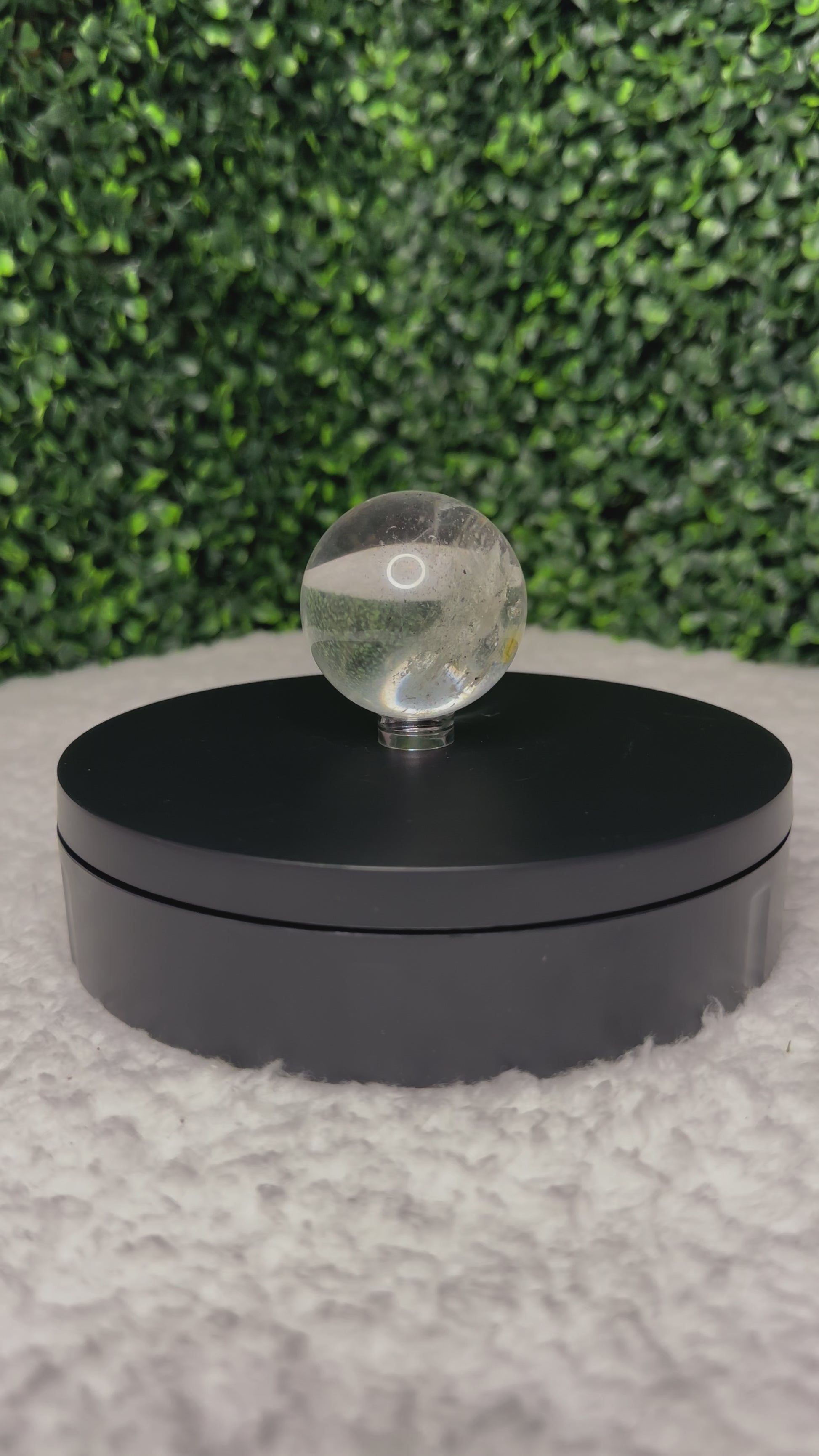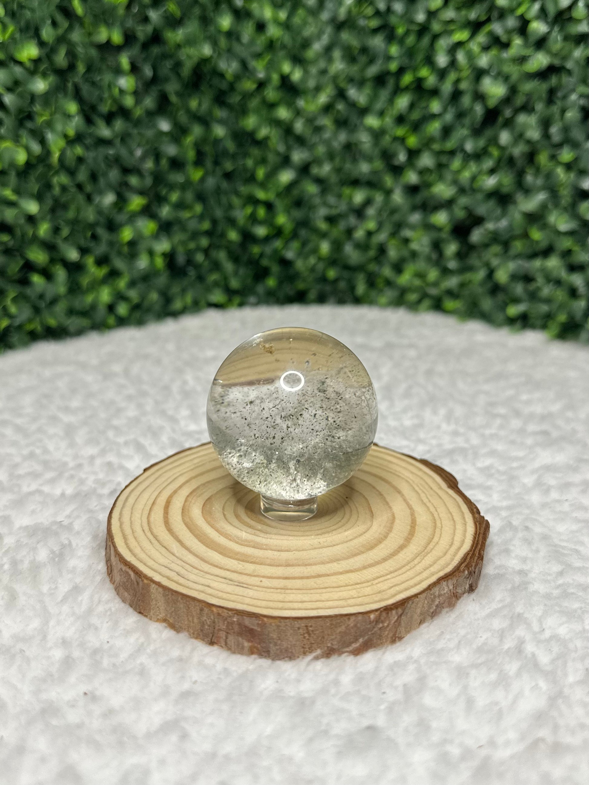 This charming Clear Quartz sphere with inclusions is a great ally to one's spiritual practice. In addition to Clear Quartz's ability to amplify energies and intentions, the sphere shape is also quite special - spreading energy outward like a ripple in water. It becomes an incredible instrument to use in divination work, especially scrying. Enjoy infusing this blank canvas with your energies to enhance your spiritual path.