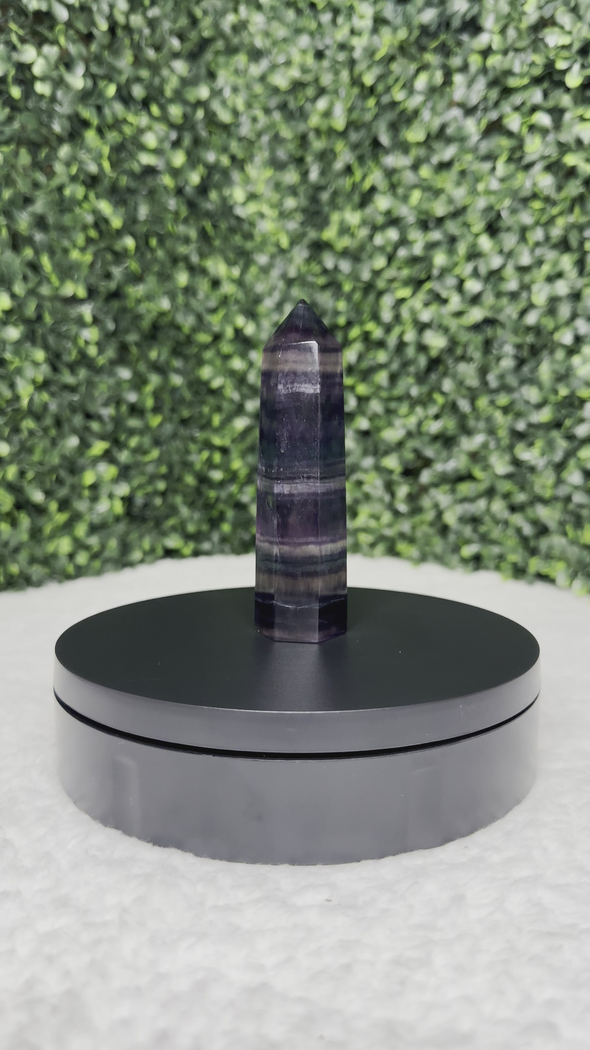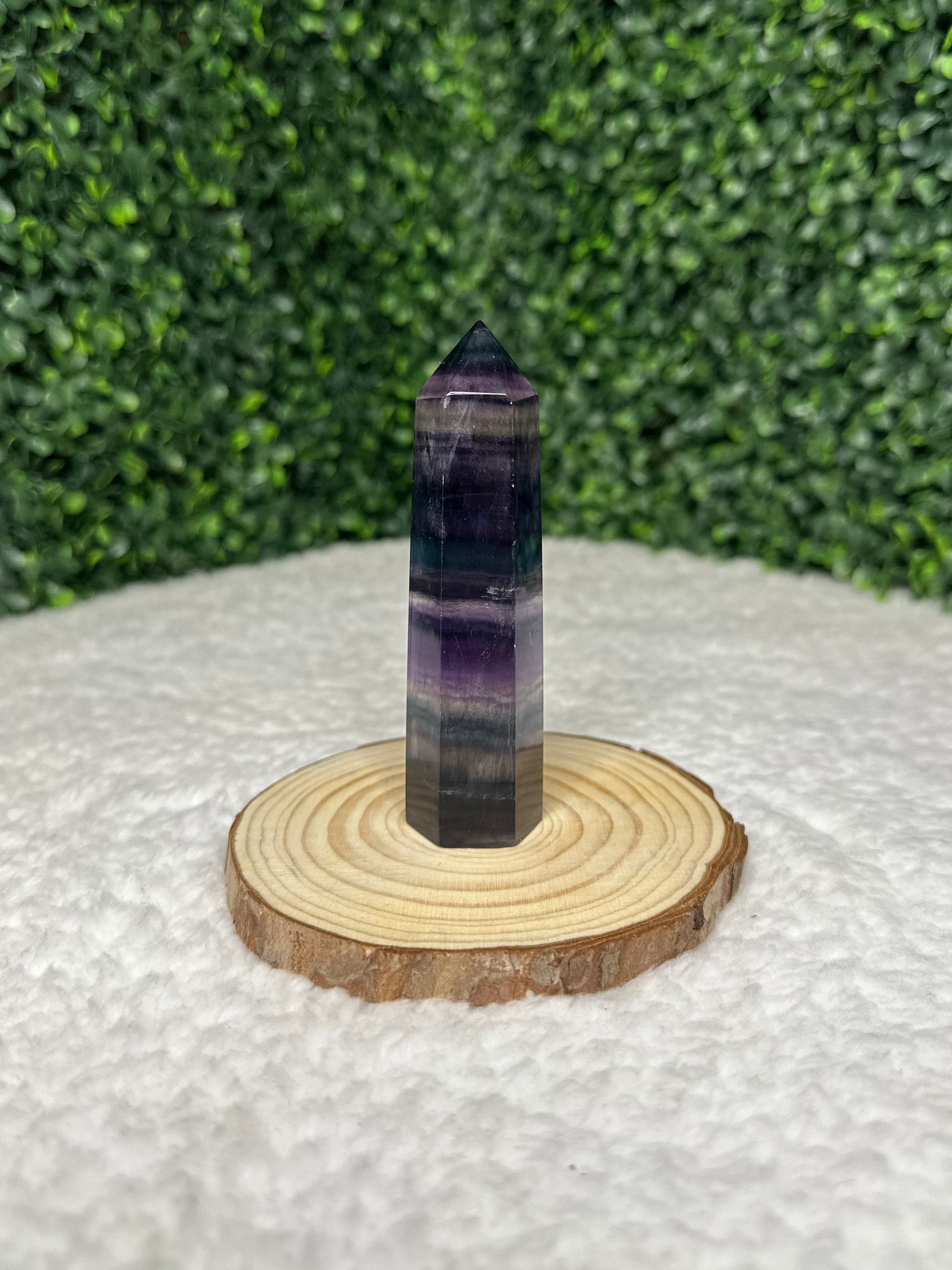 This Rainbow Fluorite tower has beautiful deep coloring that shows off its purples, blues, and yellows. This would be a perfect addition in an office space to help promote mental focus and clarity. It is also great to keep in a spiritual space to heighten intuition and psychic abilities.