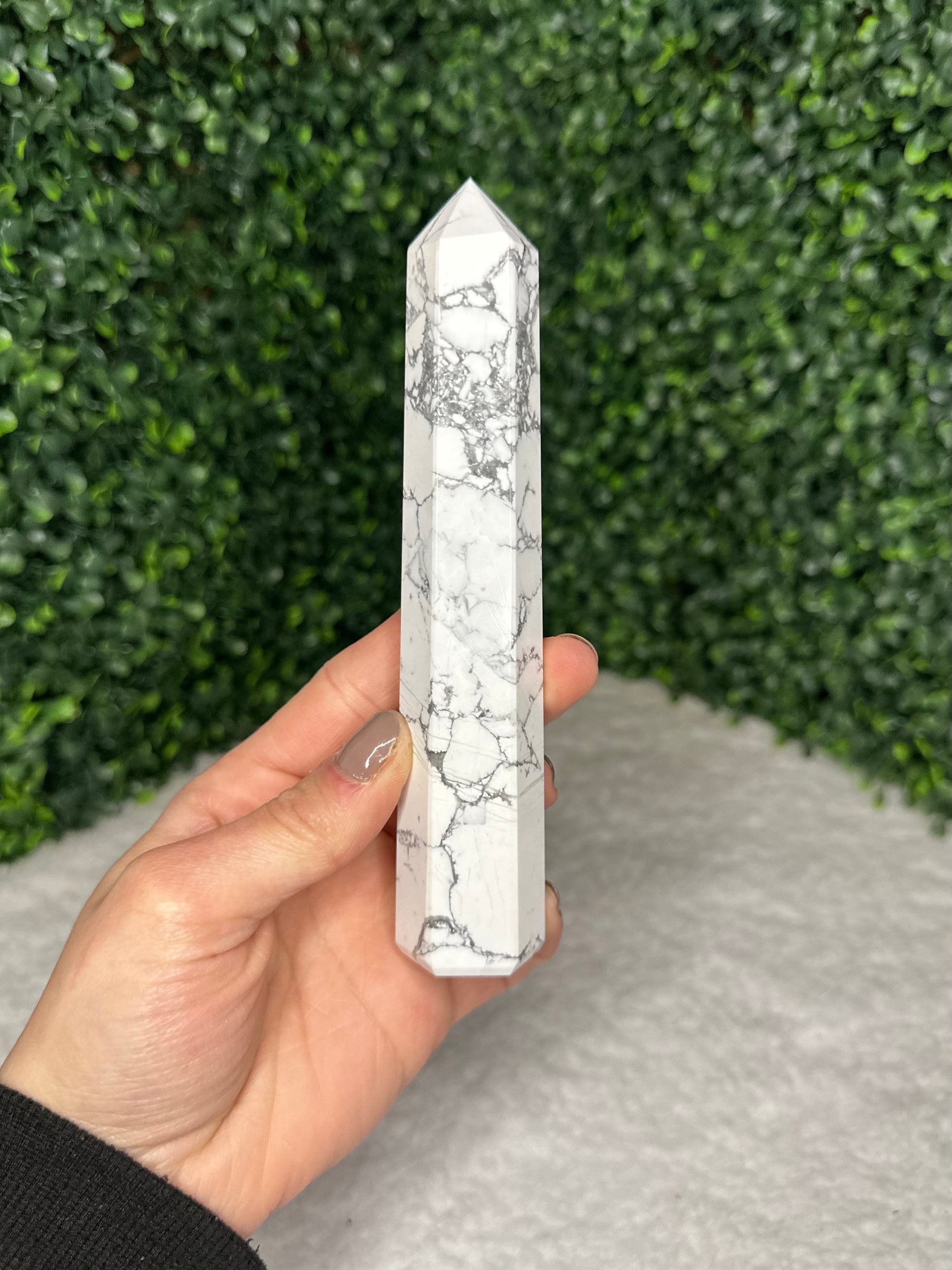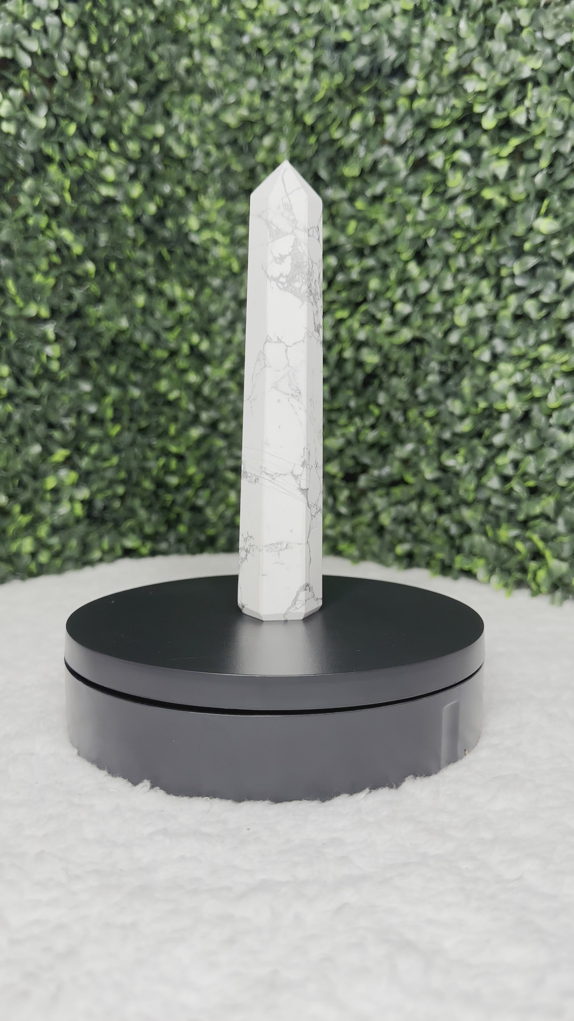 This Howlite tower is sure to bring a sense of pure serenity to its user. Howlite is best known for its abilities to promote deep relaxation and relieve tension. It is a wonderful ally for anyone who has been experiencing a particularly stressful time. This crystal can assist in filtering out anxious thoughts while enhancing logical reasoning abilities. When placed near a bed it can also be helpful for encouraging deep and restful sleep.